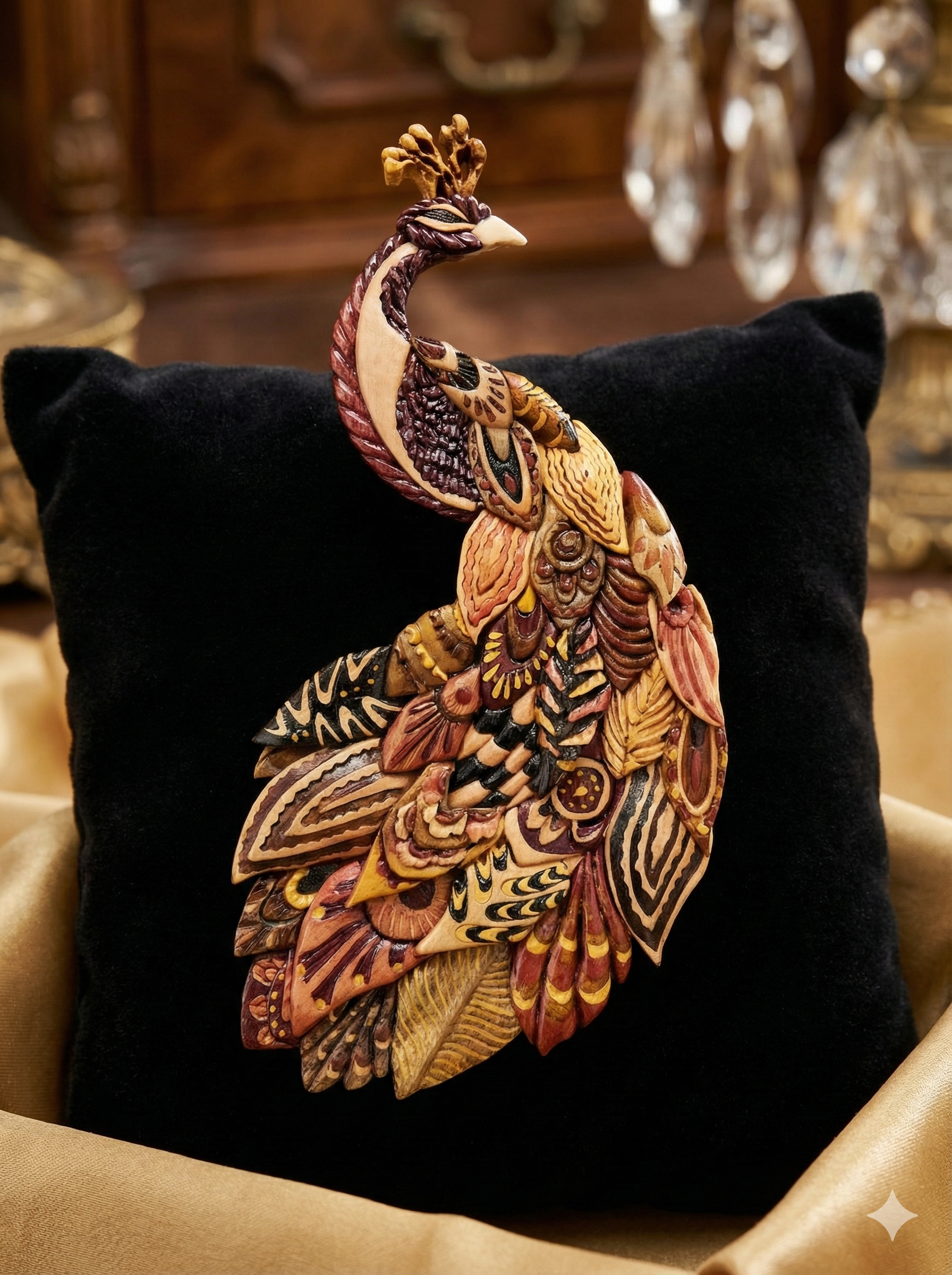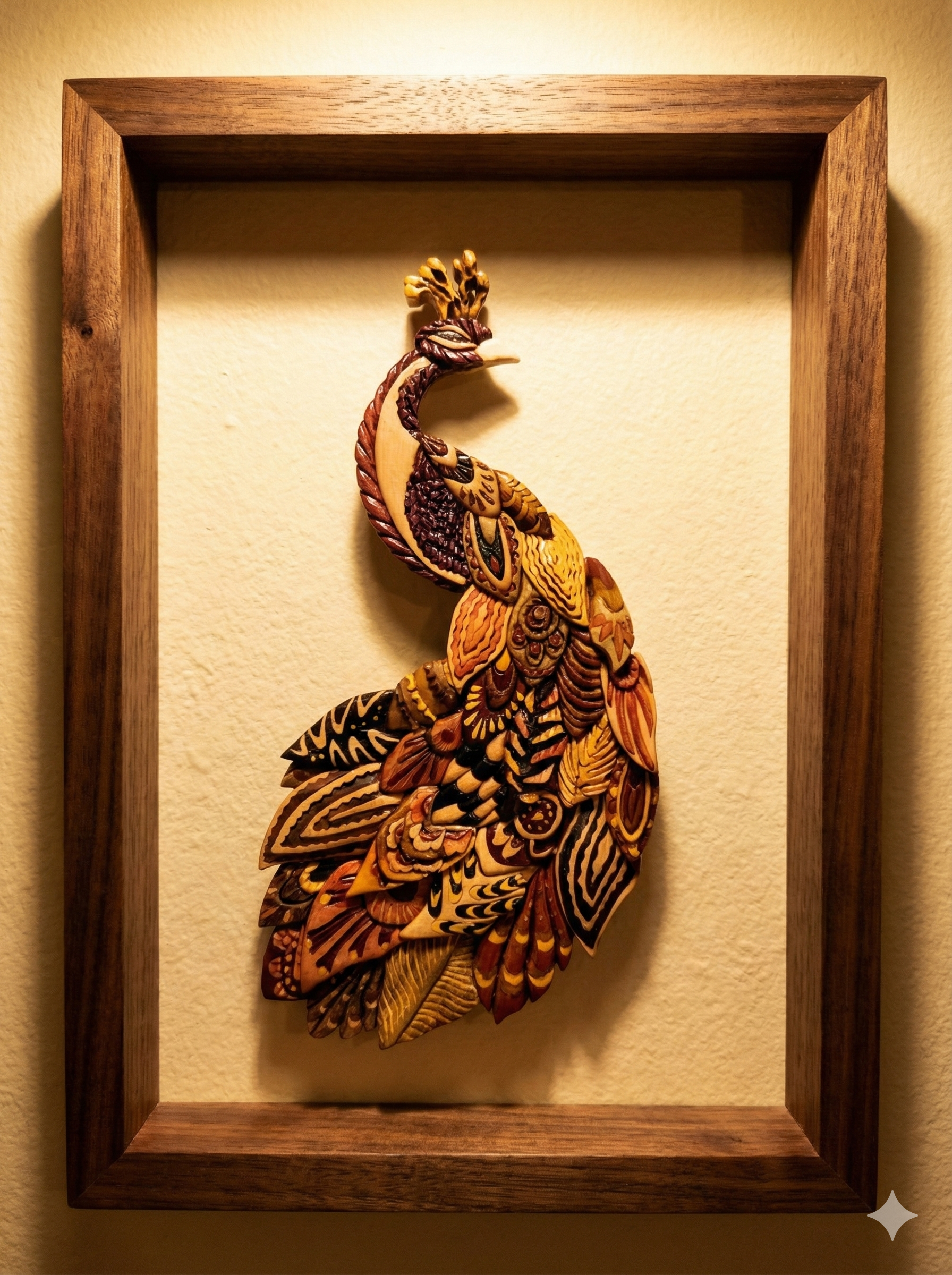 Handcrafted Wood Marquetry “Majestic Peacock”